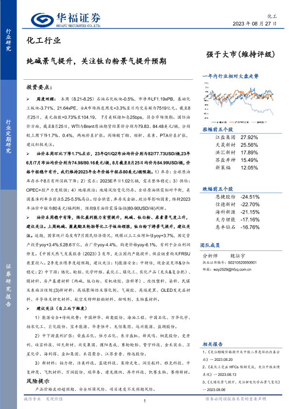 【华福证券】【20230827】20230827-华福证券-化工行业:纯碱景气提升,关注钛白粉景气提升预期-33页