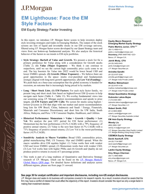 【J.P. Morgan】【20220622】新兴市场灯塔:面对新兴市场风格因素;新兴市场股票策略因素投资-41页