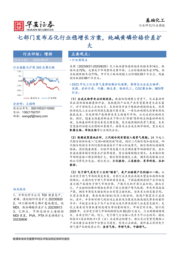 【华安证券】【20230827】基础化工行业周报:七部门发布石化行业稳增长方案,纯碱黄磷价格价差扩大-46页