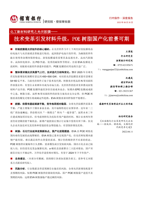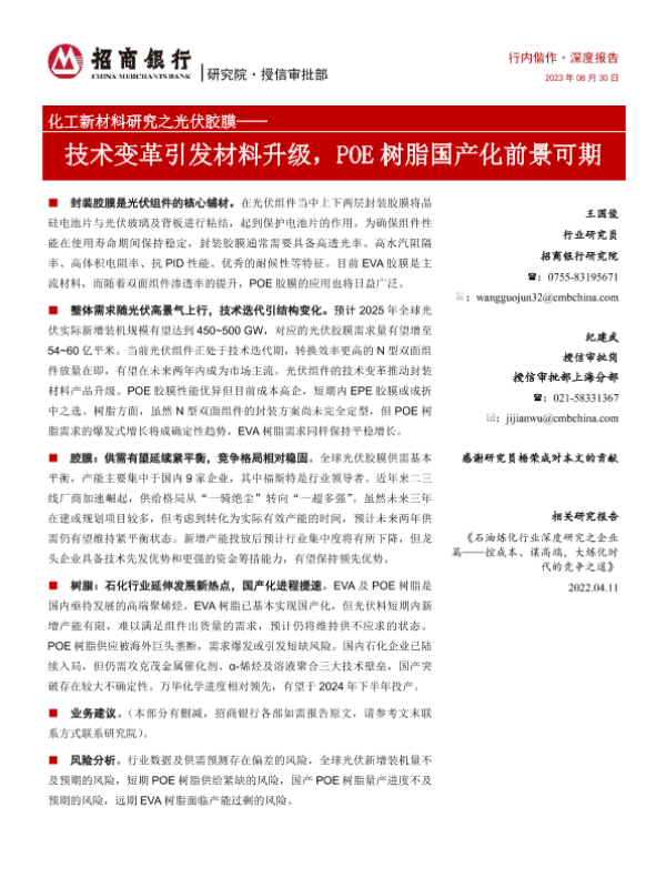 【招商银行】【20230830】化工新材料研究之光伏胶膜——技术变革引发材料升级,POE树脂国产化前景可期-29页