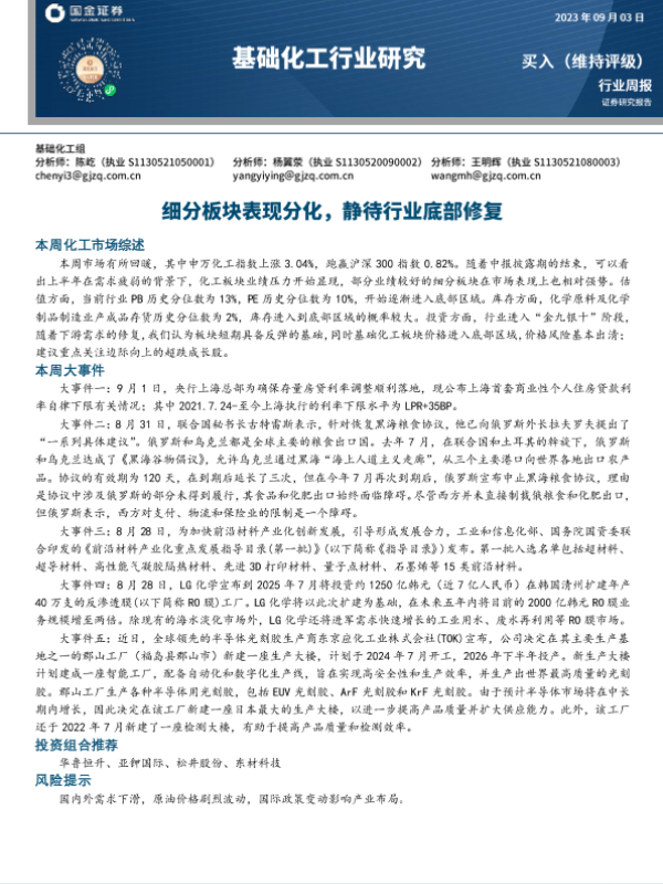 【国金证券】【20230903】基础化工行业研究:细分板块表现分化,静待行业底部修复-23页