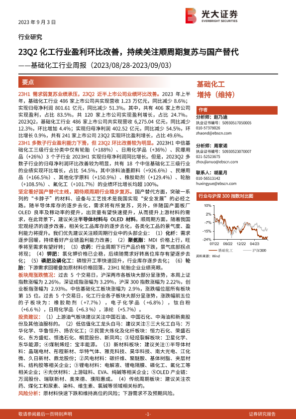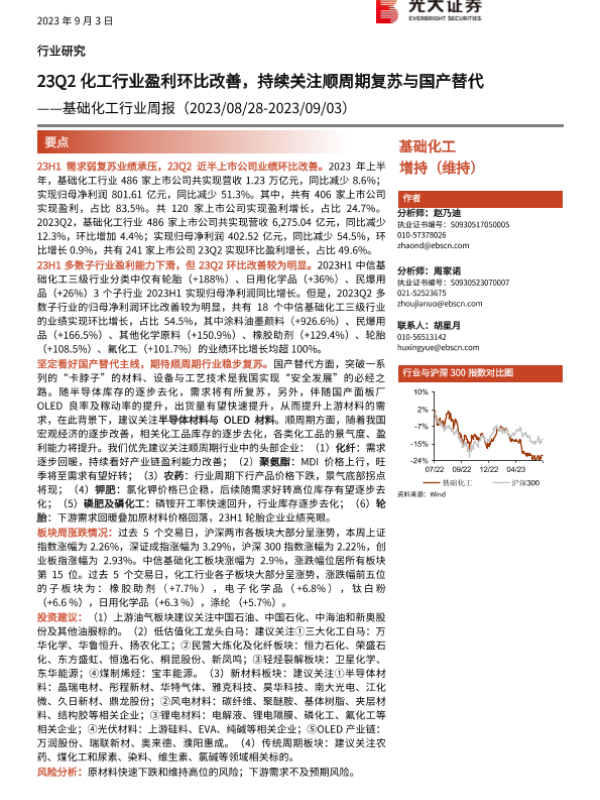 【光大证券】【20230903】23Q2化工行业盈利环比改善,持续关注顺周期复苏与国产替代-36页