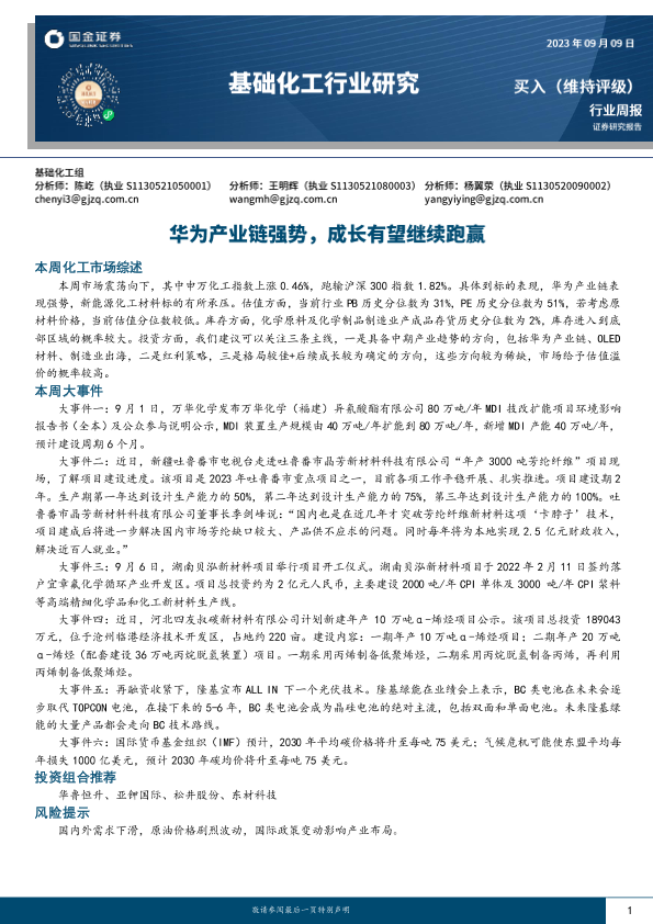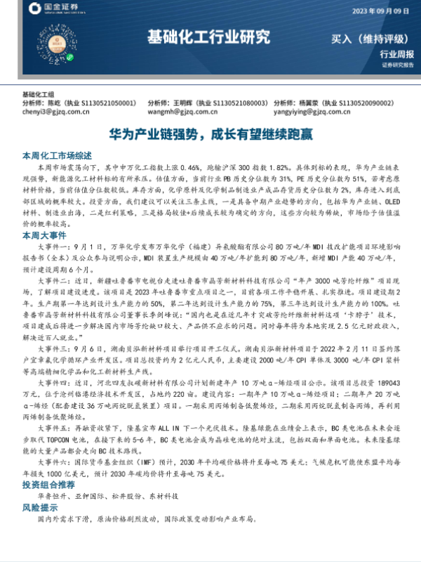【国金证券】【20230909】基础化工行业研究:华为产业链强势,成长有望继续跑赢-24页