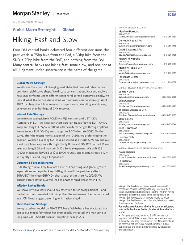 【Morgan Stanley】【20220617】全球投资策略-全球宏观策略师:加息,快与慢-83页