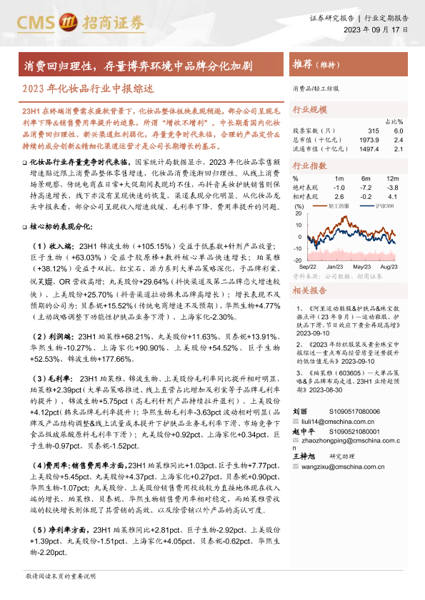 【海通证券】【20230917】2023年化妆品行业中报综述:消费回归理性,存量博弈环境中品牌分化加剧-11页