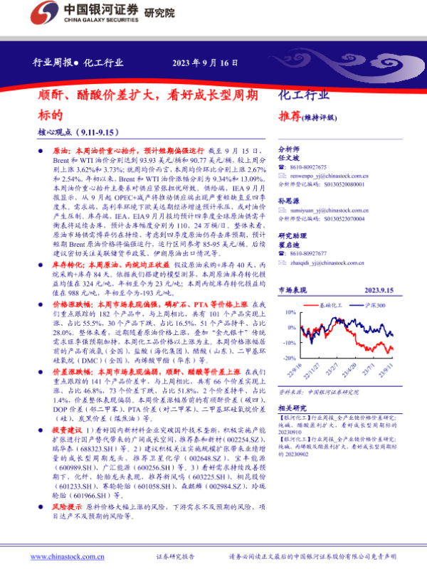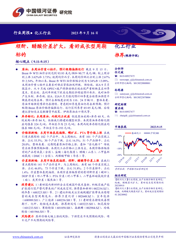 【银河证券】【20230916】20230916-中国银河-化工行业行业周报:顺酐、醋酸价差扩大,看好成长型周期标的-20页