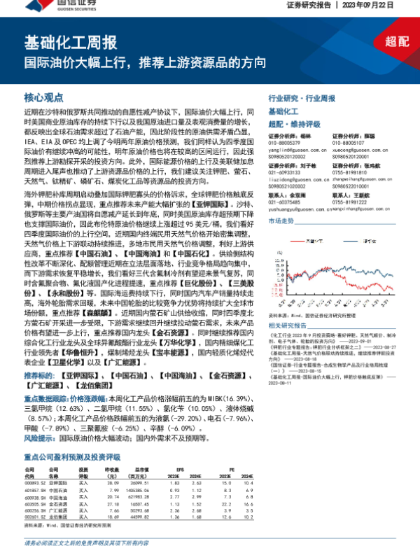 【国信证券】【20230922】基础化工周报:国际油价大幅上行,推荐上游资源品的方向-29页