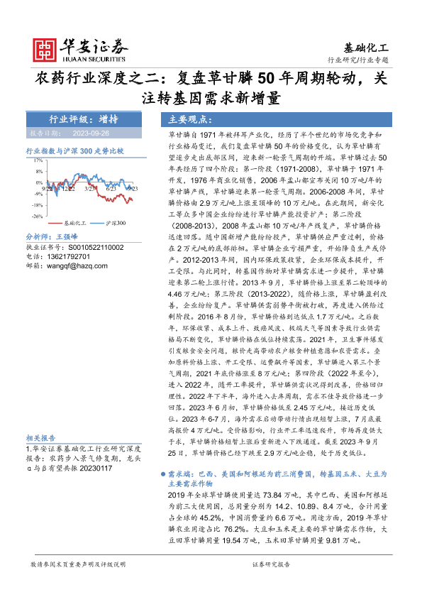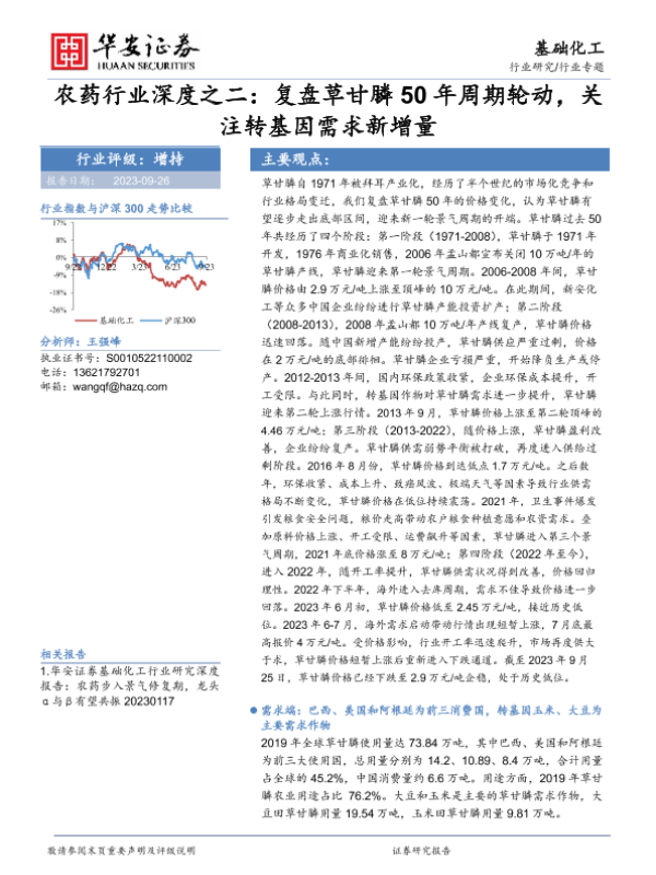 【华安证券】【20230926】20230926-华安证券-农药行业深度之二:复盘草甘膦50年周期轮动,关注转基因需求新增量-28页