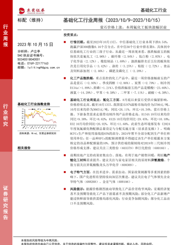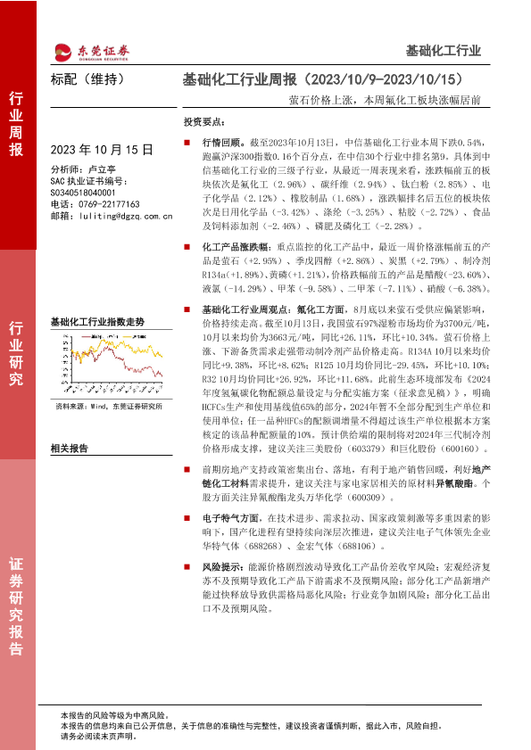 【东莞证券】【20231015】基础化工行业周报:萤石价格上涨,本周氟化工板块涨幅居前-12页