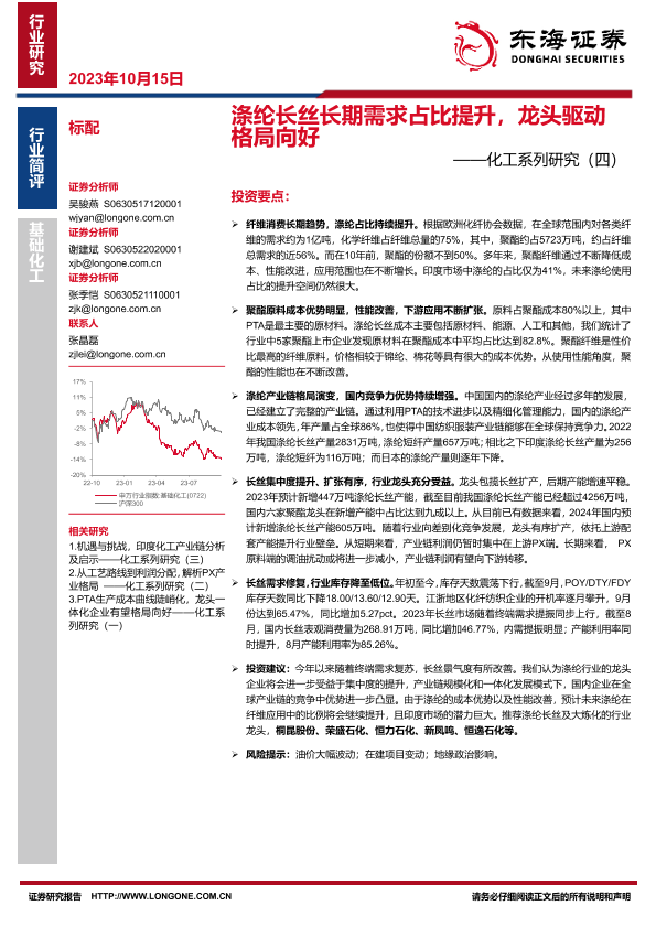 【东海证券】【20231015】涤纶长丝长期需求占比提升,龙头驱动格局向好-15页