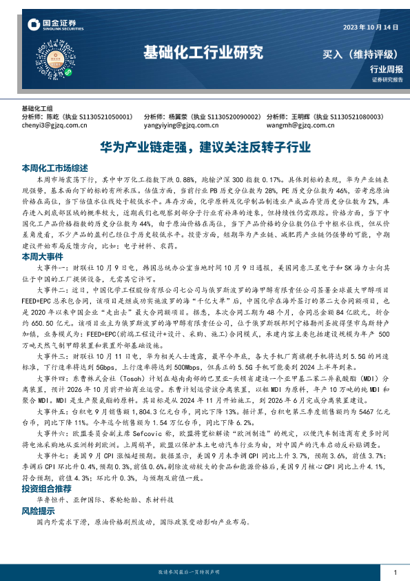 【国金证券】【20231014】基础化工行业研究:华为产业链走强,建议关注反转子行业-25页