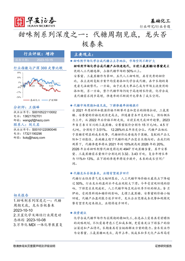 【华安证券】【20231015】甜味剂系列深度之一:代糖周期见底,龙头否极泰来-35页