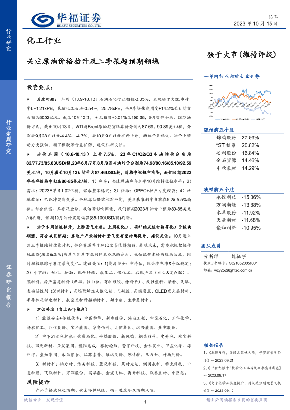 【华福证券】【20231015】化工行业:关注原油价格抬升及三季报超预期领域-26页