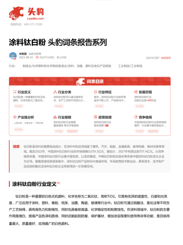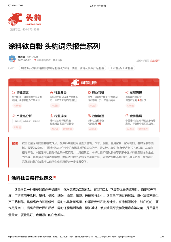 【头豹研究院】【20231019】涂料钛白粉 头豹词条报告系列-20页