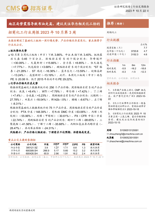 【海通证券】【20231022】招商化工行业周报2023年10月第3周:地区局势震荡导致布油走高,建议关注华为相关化工标的-22页