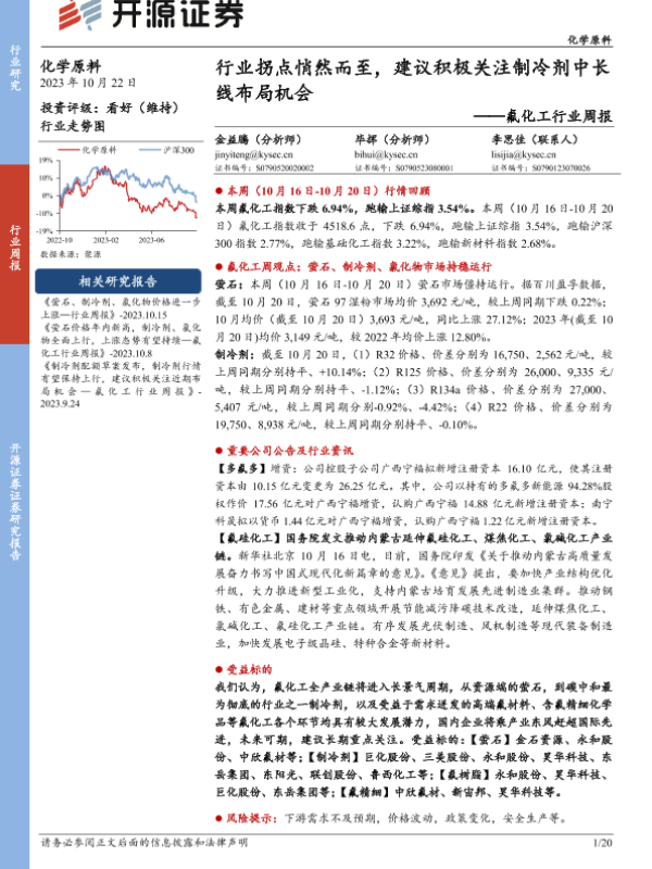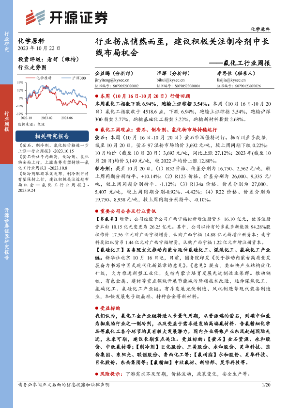 【开源证券】【20231022】20231022-开源证券-氟化工行业周报:行业拐点悄然而至,建议积极关注制冷剂中长线布局机会-20页