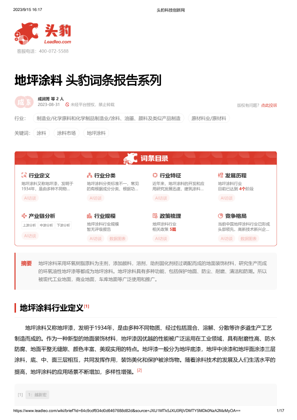 【头豹研究院】【20231025】地坪涂料 头豹词条报告系列-17页