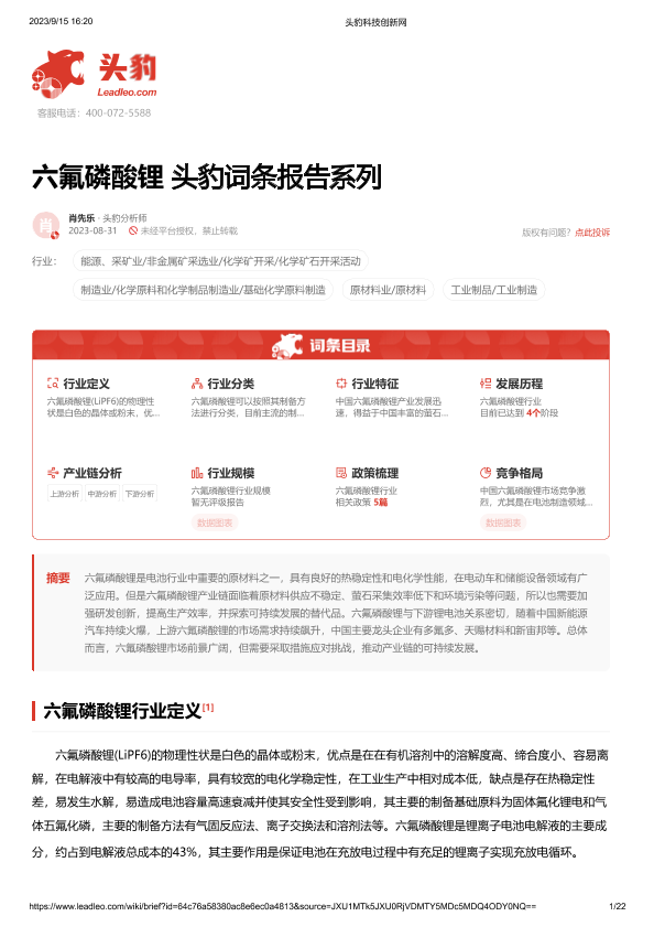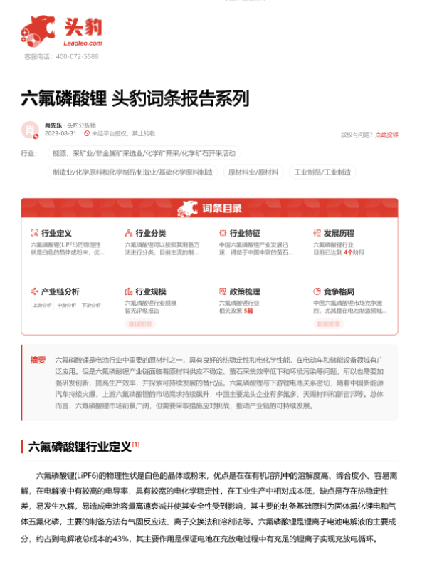 【头豹研究院】【20231025】六氟磷酸锂 头豹词条报告系列-22页
