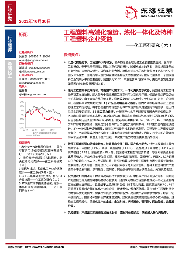 【东海证券】【20231030】工程塑料高端化趋势,炼化一体化及特种工程塑料企业受益-11页