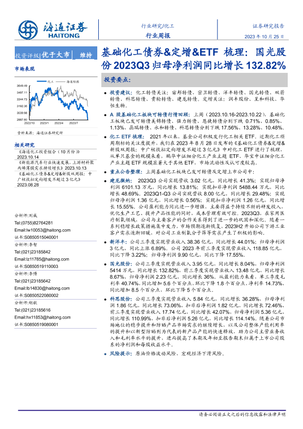 【海通证券】【20231025】20231025-海通证券-化工行业周报:基础化工债券&定增&ETF梳理:国光股份2023Q3归母净利润同比增长132.82%-26页