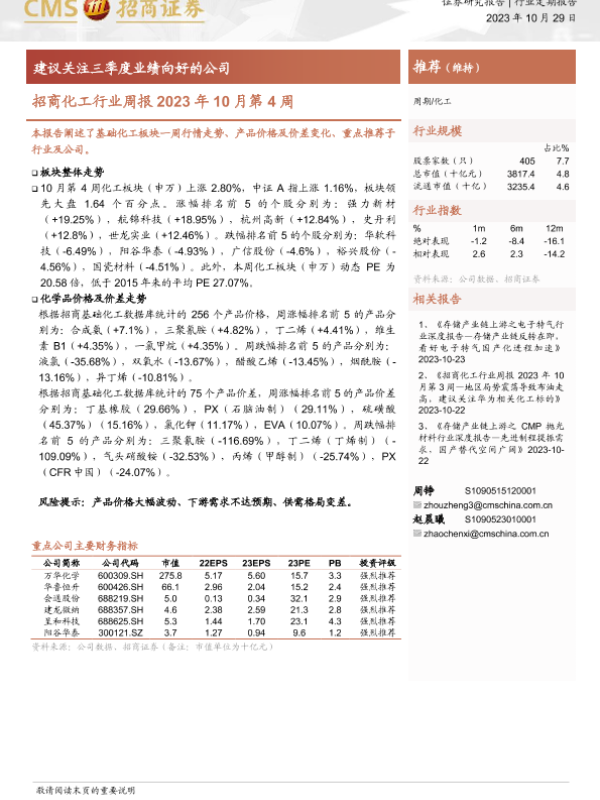 【海通证券】【20231029】招商化工行业周报2023年10月第4周:建议关注三季度业绩向好的公司-23页