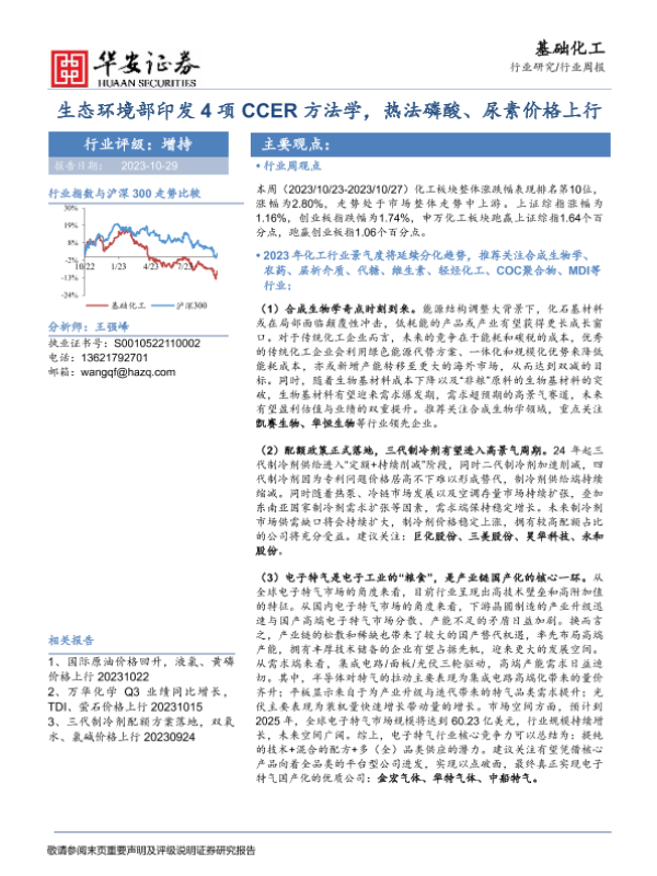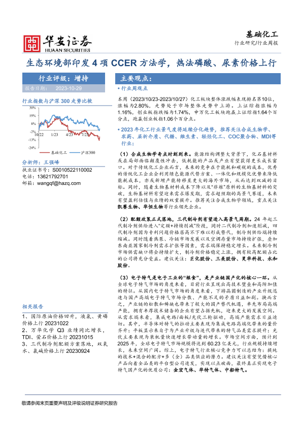 【华安证券】【20231029】20231029-华安证券-基础化工行业周报:生态环境部印发4项CCER方法学,热法磷酸、尿素价格上行-45页