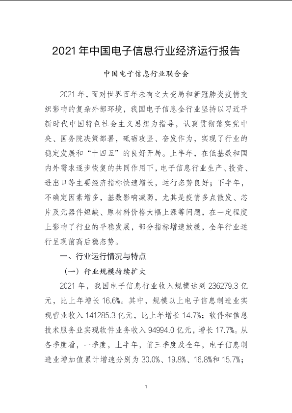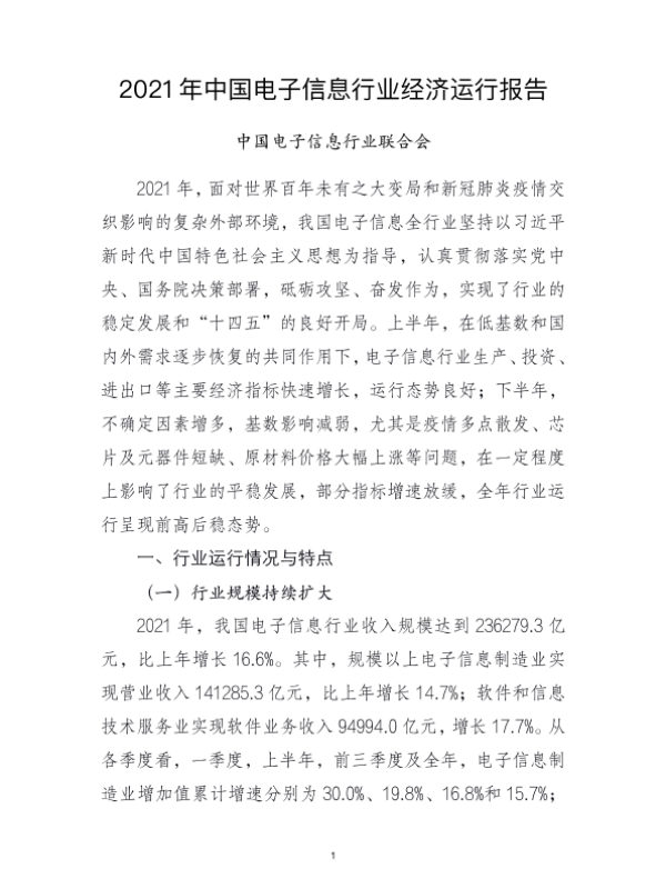 2021年 中国市场 电子信息 经济运行 行业报告