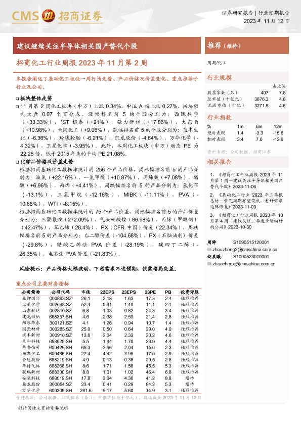 【海通证券】【20231112】招商化工行业周报2023年11月第2周:建议继续关注半导体相关国产替代个股-31页