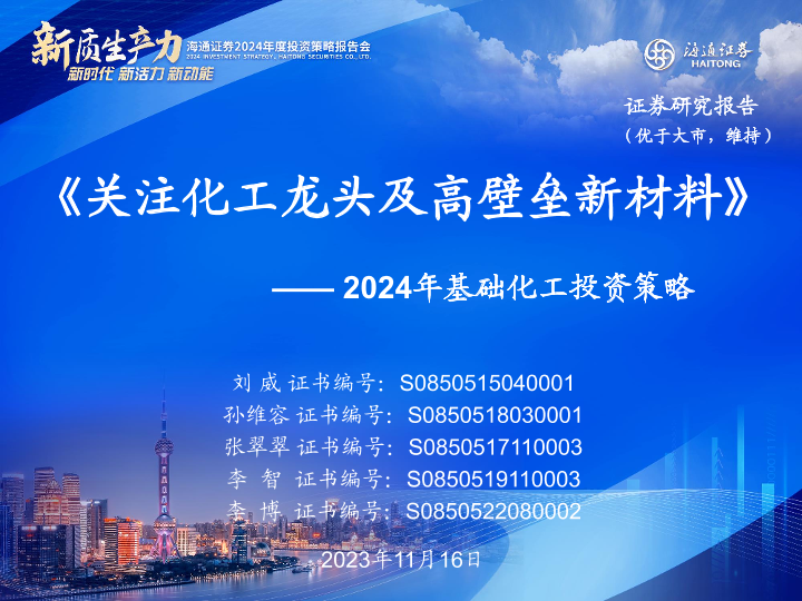【海通证券】【20231116】2024年基础化工投资策略:《关注化工龙头及高壁垒新材料》-24页