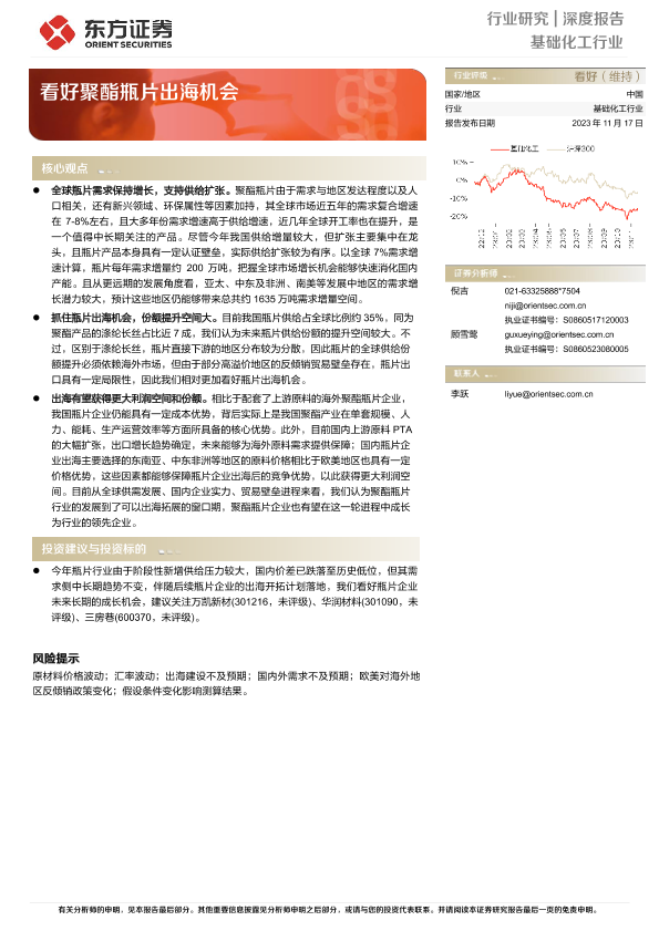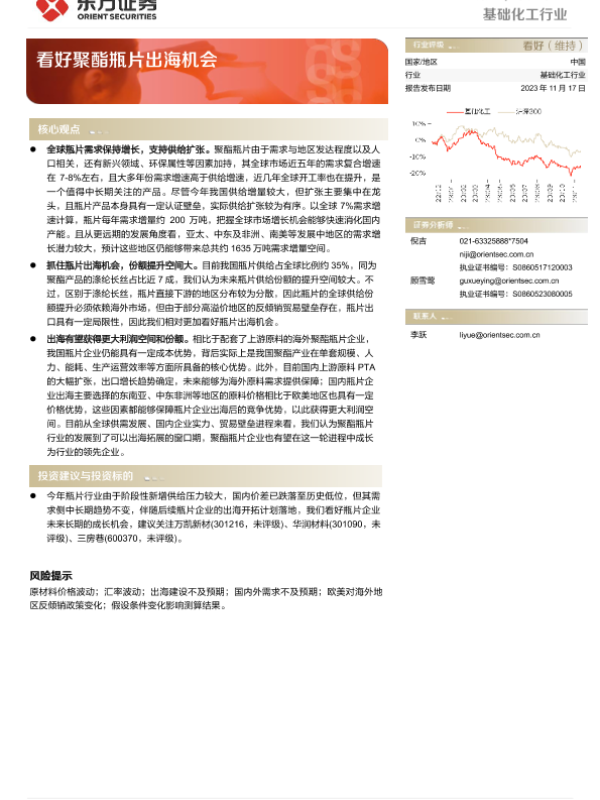 【东方证券】【20231117】基础化工行业:看好聚酯瓶片出海机会-19页