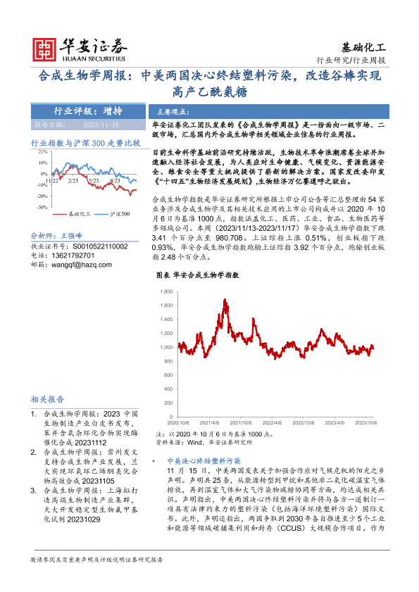 【华安证券】【20231118】20231118-华安证券-合成生物学周报:中美两国决心终结塑料污染,改造谷棒实现高产乙酰氨糖-26页