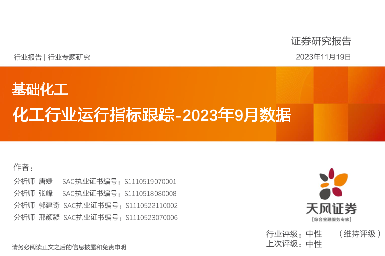 【天风证券】【20231119】基础化工行业专题研究:2023年9月数据-化工行业运行指标跟踪-38页