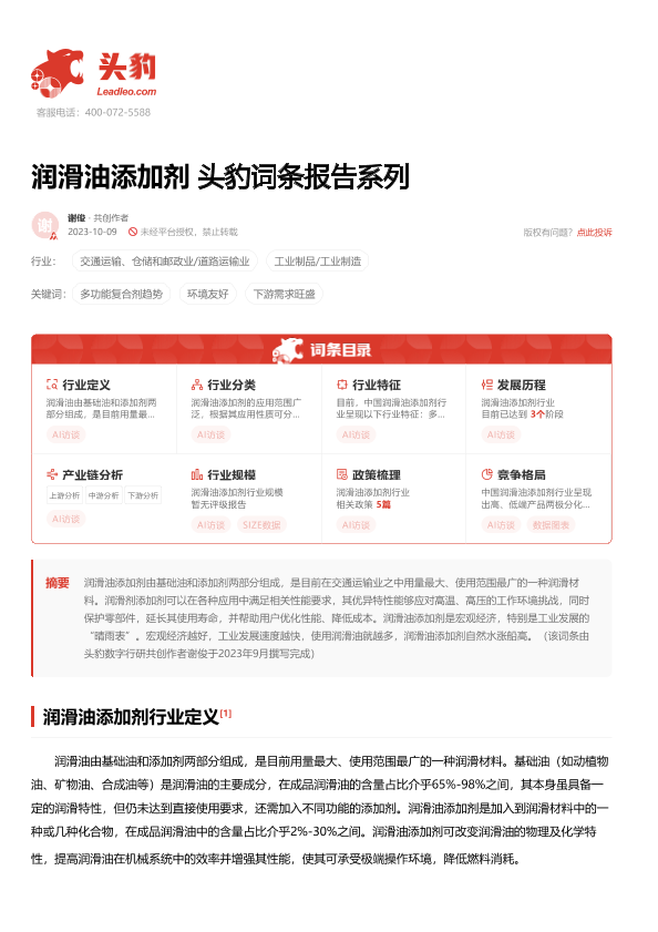 【头豹研究院】【2023】20231120-头豹研究院-润滑油添加剂 头豹词条报告系列-16页