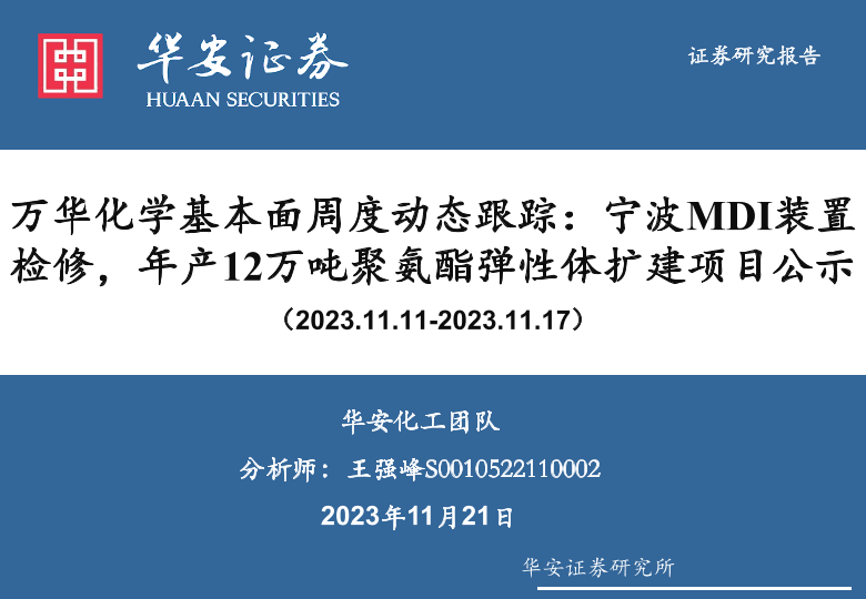【华安证券】【20231121】万华化学基本面周度动态跟踪:宁波MDI装置检修,年产12万吨聚氨酯弹性体扩建项目公示-32页