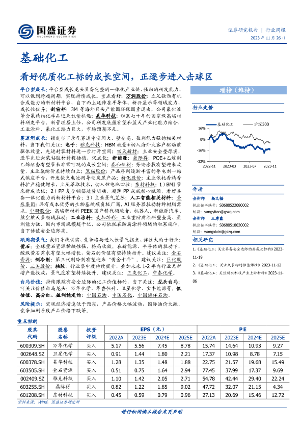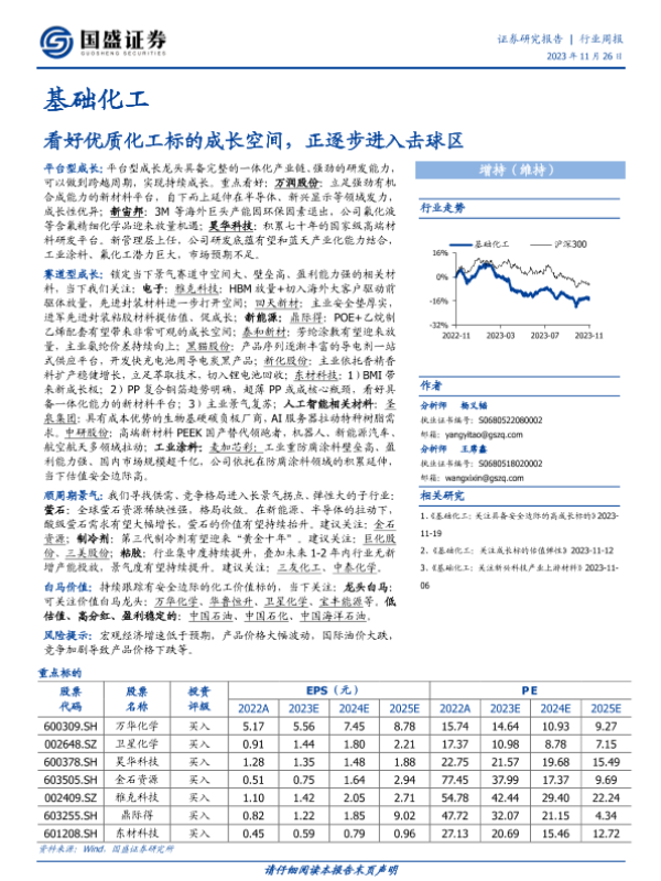 【国盛证券】【20231126】20231126-国盛证券-基础化工行业周报:看好优质化工标的成长空间,正逐步进入击球区-12页