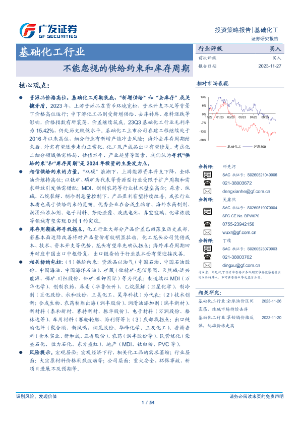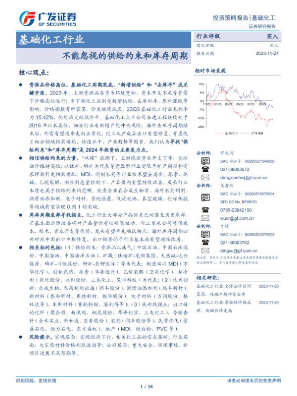 【广发证券】【20231127】基础化工行业投资策略报告:不能忽视的供给约束和库存周期-54页