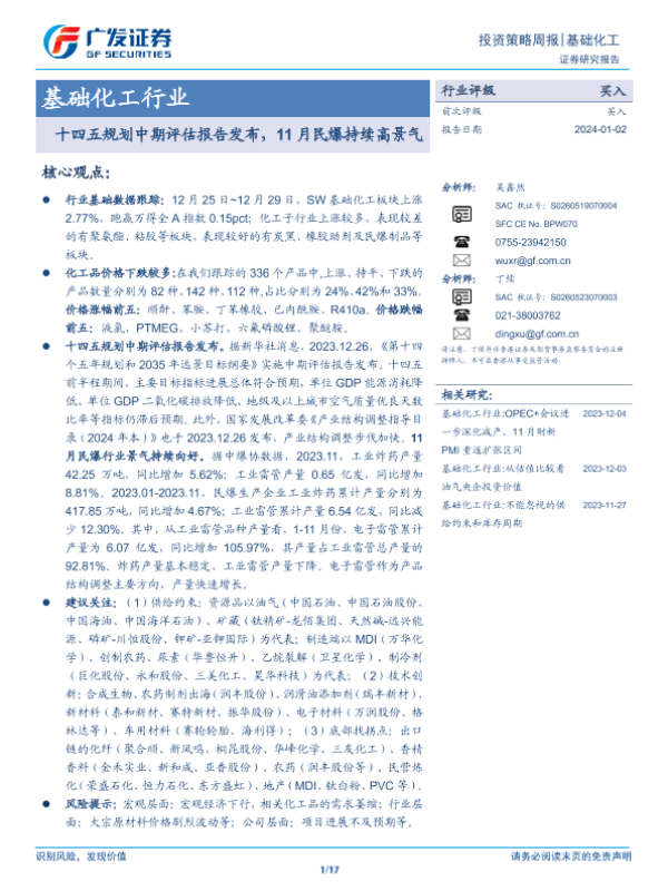 【广发证券】【20240102】20240102-广发证券-基础化工行业投资策略周报:十四五规划中期评估报告发布,11月民爆持续高景气-17页