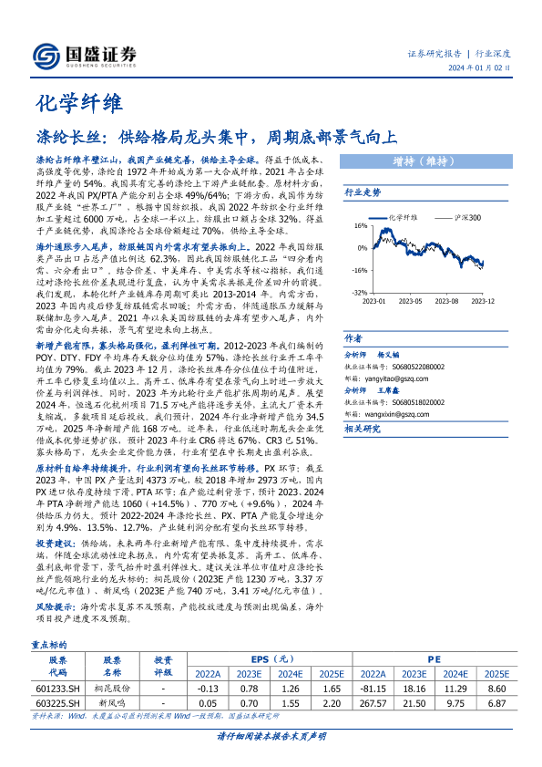 【国盛证券】【20240102】20240102-国盛证券-化学纤维行业深度:涤纶长丝:供给格局龙头集中,周期底部景气向上-10页