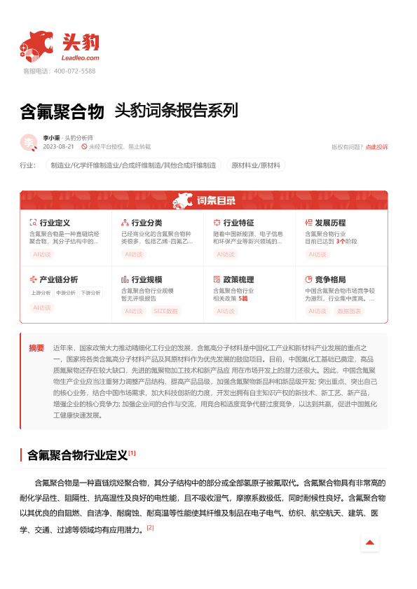 【头豹研究院】【20230821】含氟聚合物 头豹词条报告系列-21页