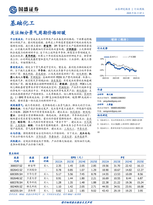 【国盛证券】【20240107】基础化工行业周报:关注细分景气周期价格回暖-11页