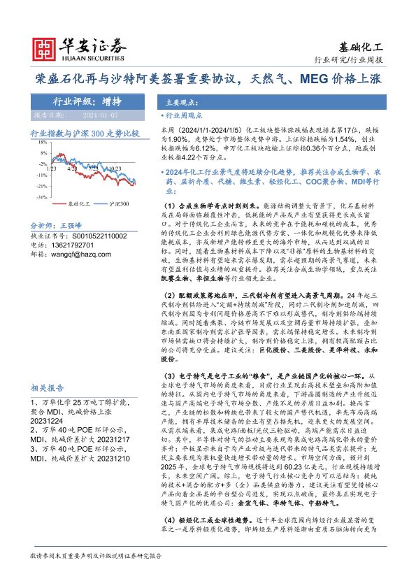 【华安证券】【20240107】20240107-华安证券-基础化工行业周报:荣盛石化再与沙特阿美签署重要协议,天然气、MEG价格上涨-44页