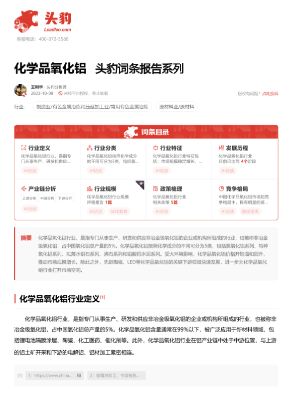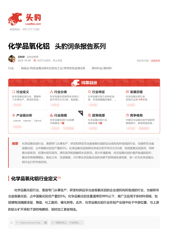 【头豹研究院】【20240112】20240112-头豹研究院-化学品氧化铝 头豹词条报告系列-19页