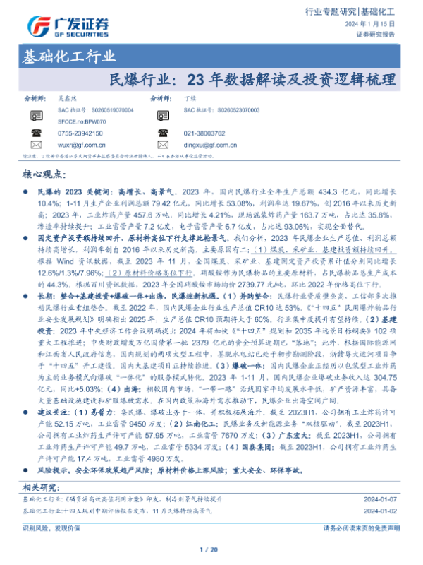 【广发证券】【20240115】基础化工行业:民爆行业:23年数据解读及投资逻辑梳理-20页