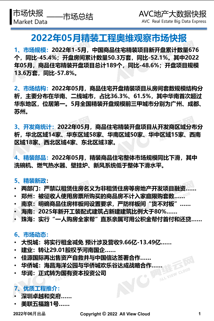 【All View Cloud】【20220601】2022年05月精装地产奥维观察-工程版-13页