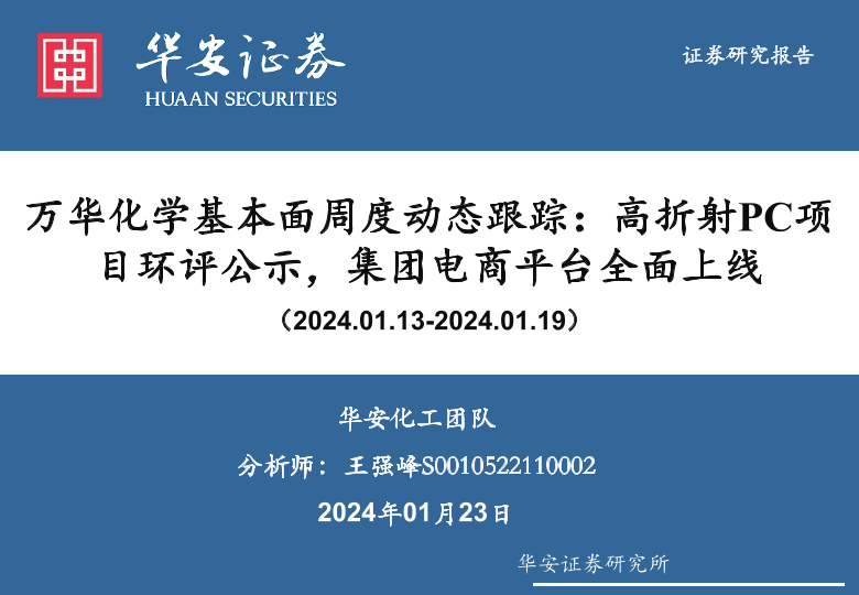 【华安证券】【20240123】万华化学基本面周度动态跟踪:高折射PC项目环评公示,集团电商平台全面上线-32页