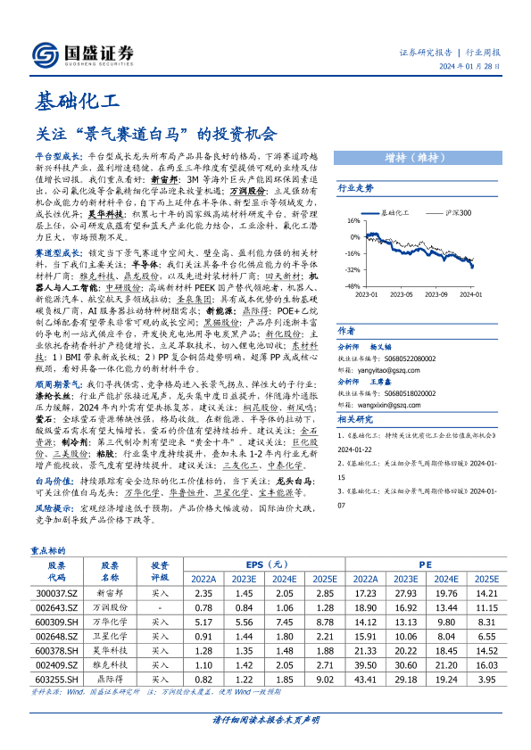 【国盛证券】【20240128】基础化工行业周报:关注“景气赛道白马”的投资机会-11页