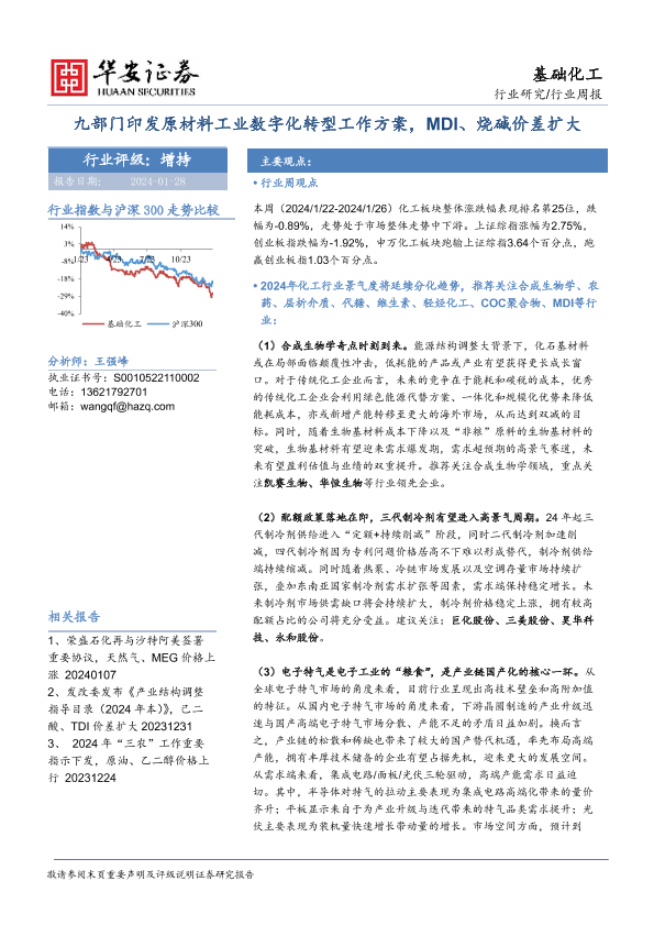 【华安证券】【20240128】20240128-华安证券-基础化工行业周报:九部门印发原材料工业数字化转型工作方案,MDI、烧碱价差扩大-49页