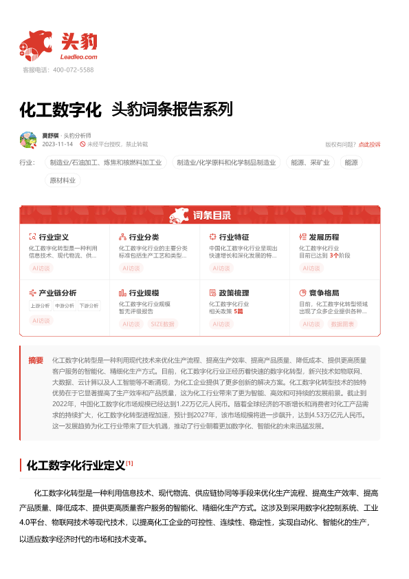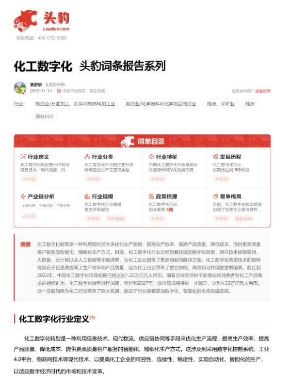 【头豹研究院】【20231114】化工数字化 头豹词条报告系列-18页