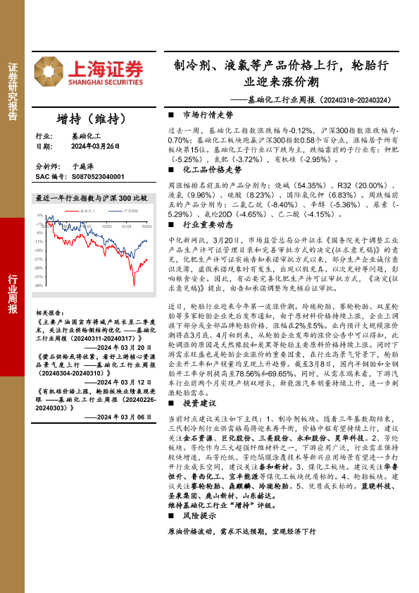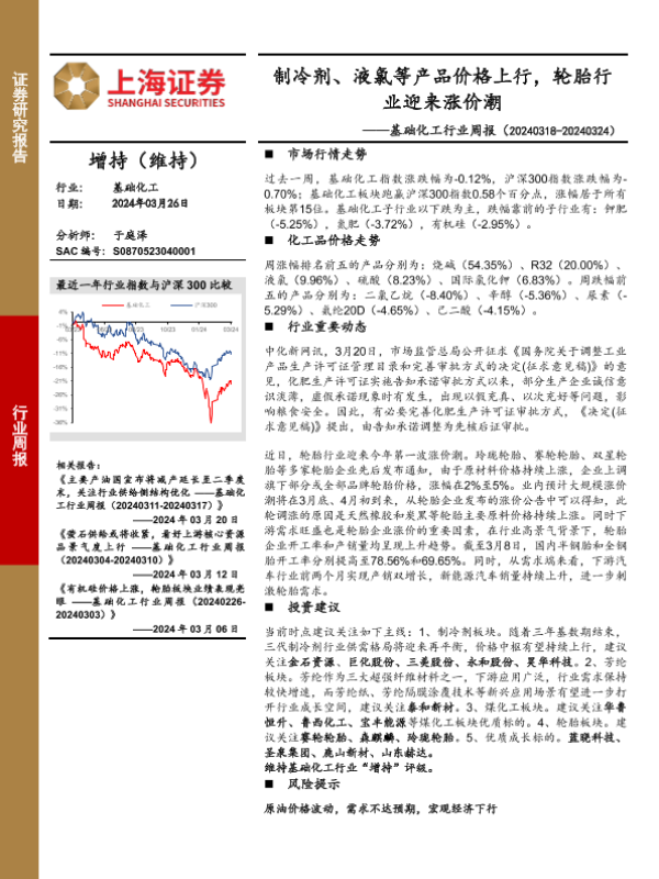 【上海证券】【20240326】20240326-上海证券-基础化工行业周报:制冷剂、液氯等产品价格上行,轮胎行业迎来涨价潮-11页