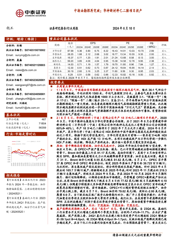 【中泰证券】【20240610】20240610-中泰证券-化工行业周报:中海油勘探再突破;华神新材料己二胺项目投产-39页